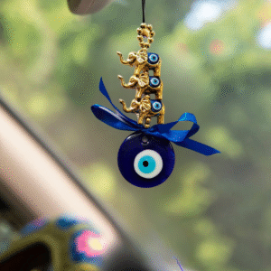 Golden Elephant Evil Eye Wall Hanging with Blue Glass Nazar – Turkish Evil Eye Home Décor for Protection, Good Luck & Positive Energy | Ideal Housewarming & Christmas Gift