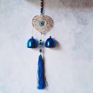 Heart Shape Evil Eye Wall Hanging with Blue Bells – Turkish Evil Eye Home Décor for Love, Protection & Positive Energy | Ideal for Housewarming & Christmas Gift