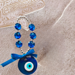 Round Evil Eye Wall Hanging – Turkish Glass Nazar with Blue Crystal Beads for Home Protection, Positive Energy & Good Luck | Housewarming & Festive Gift