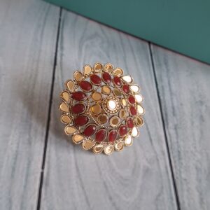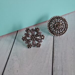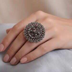 Pearls And Palettes – Oxidised Round Filigree Design American Diamond Ring | Elegant Jewellery for Parties & Weddings