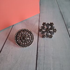 Pearls And Palettes – Royal Oxidised Adjustable Rings Set for Women | Traditional & Boho Jewellery for Ethnic and Casual Wear
