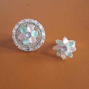 Pearls And Palettes – Petal Design Rings Set with Shimmering American Diamonds | Contemporary Adjustable Jewellery for Women