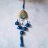 Enhance your home décor with this vibrant Evil Eye peacock wall hanging. Adorned with delicate blue bells, it symbolizes protection, positive energy, and good luck, while adding elegance to any space.