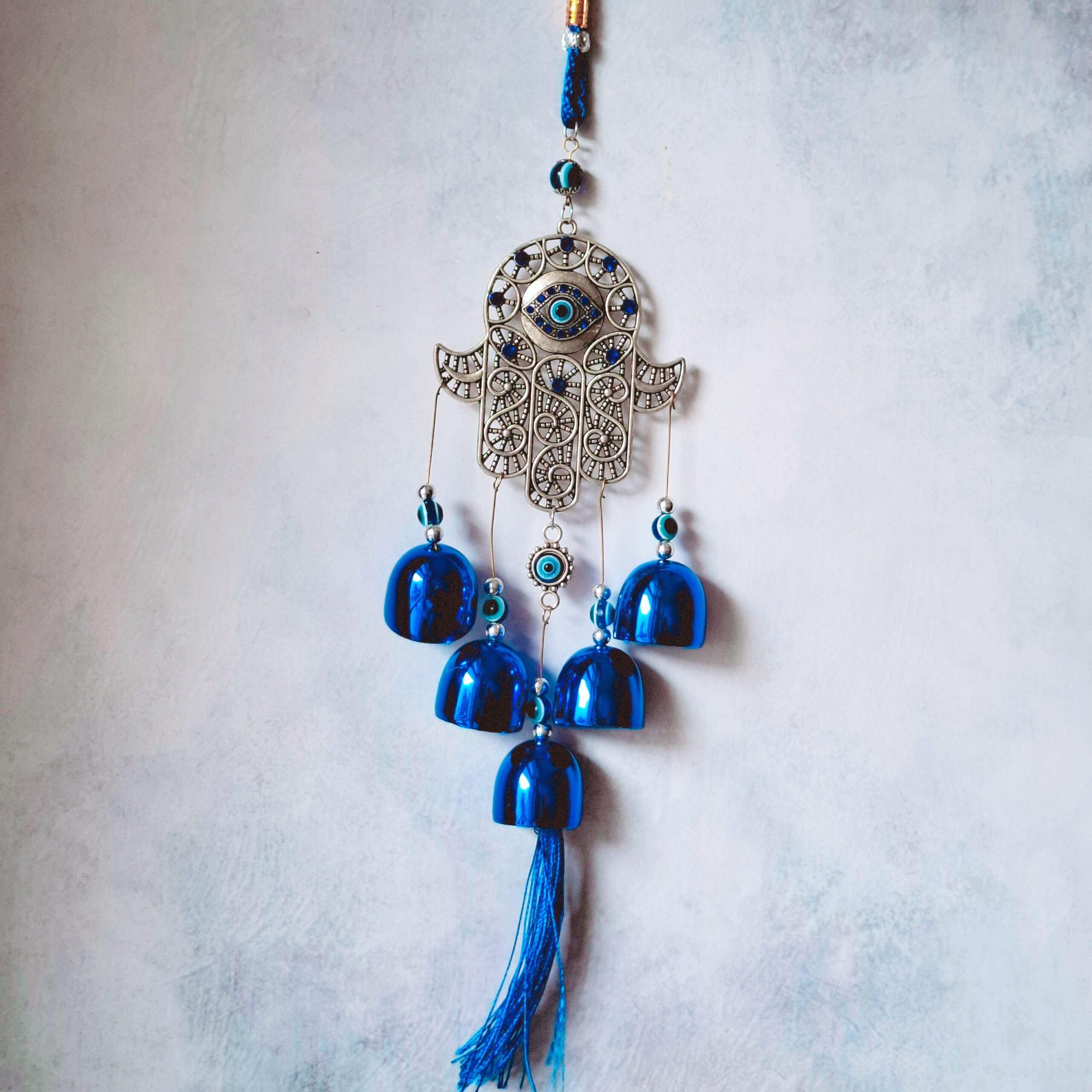 Invite protection, positivity, and harmony into your home with this stunning Evil Eye Hamsa wall hanging!