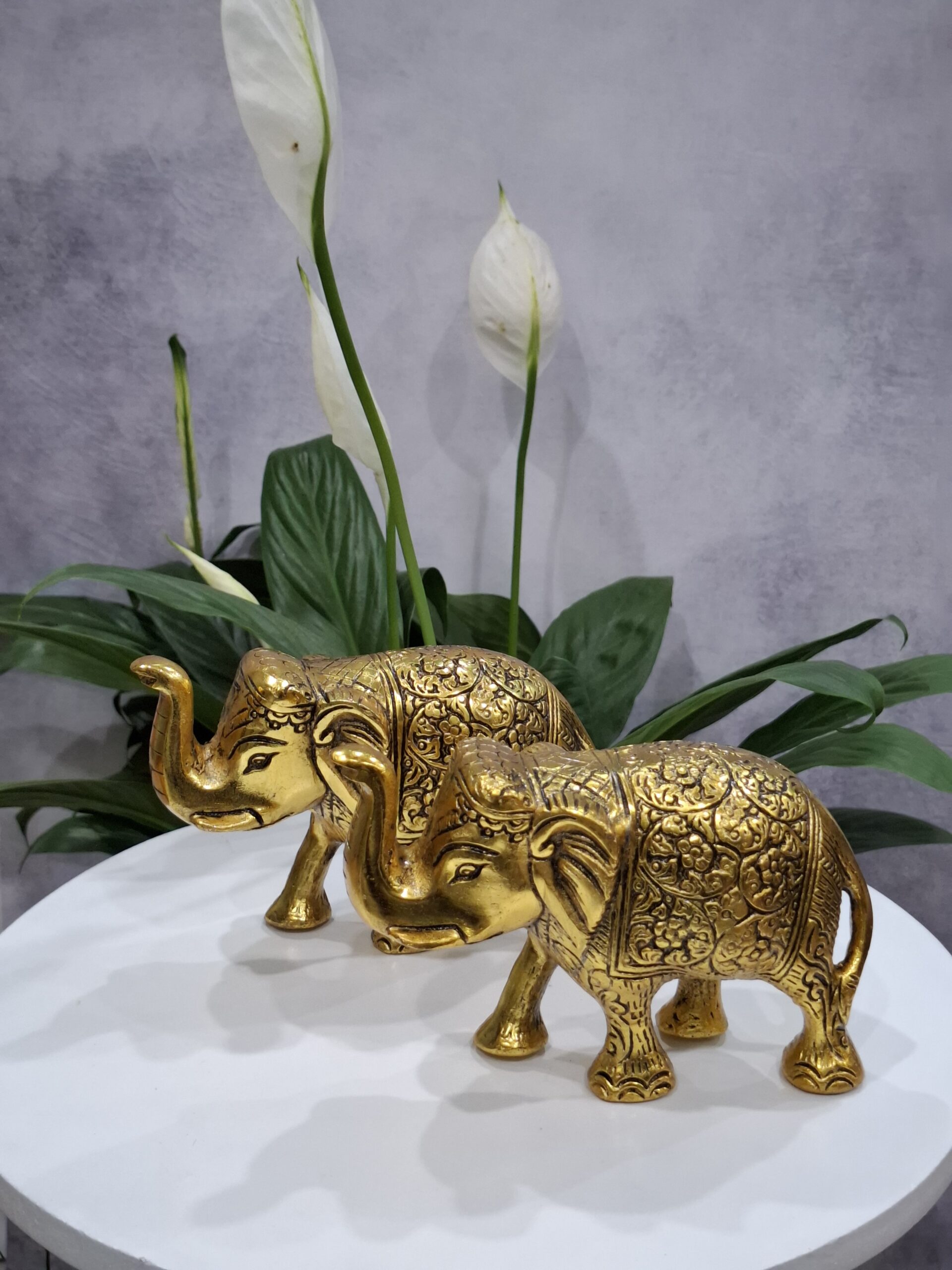 Invite prosperity, power, and harmony into your space with this elegant Golden Elephant Pair.