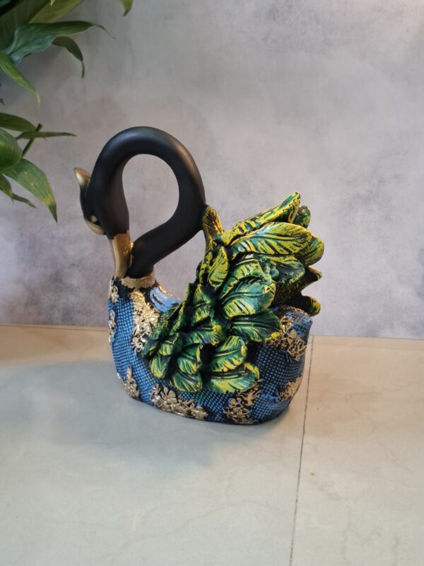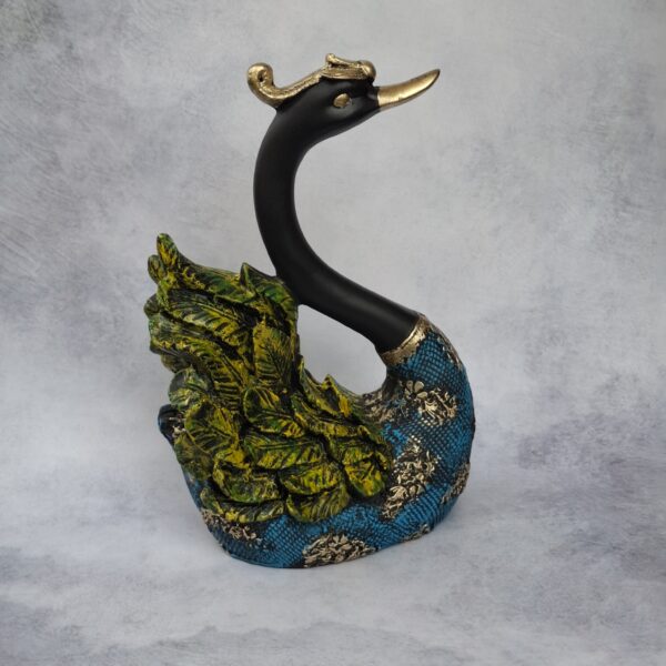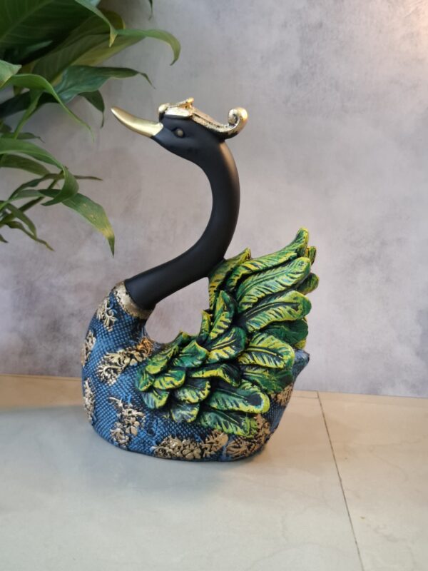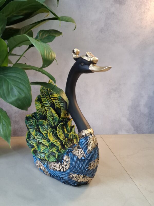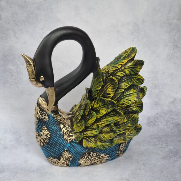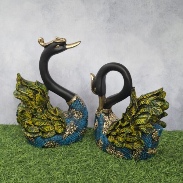 Elevate your home decor with this exquisite pair of swans, beautifully crafted in a rich blend of blue and green hues, accentuated by luxurious golden-black textured detailing. Symbolizing love, elegance, and harmony, these artistic sculptures bring a serene charm to any space. Ideal for living rooms, entryways, or as a thoughtful gift, this decorative duo adds a touch of sophistication and timeless beauty to your interiors.