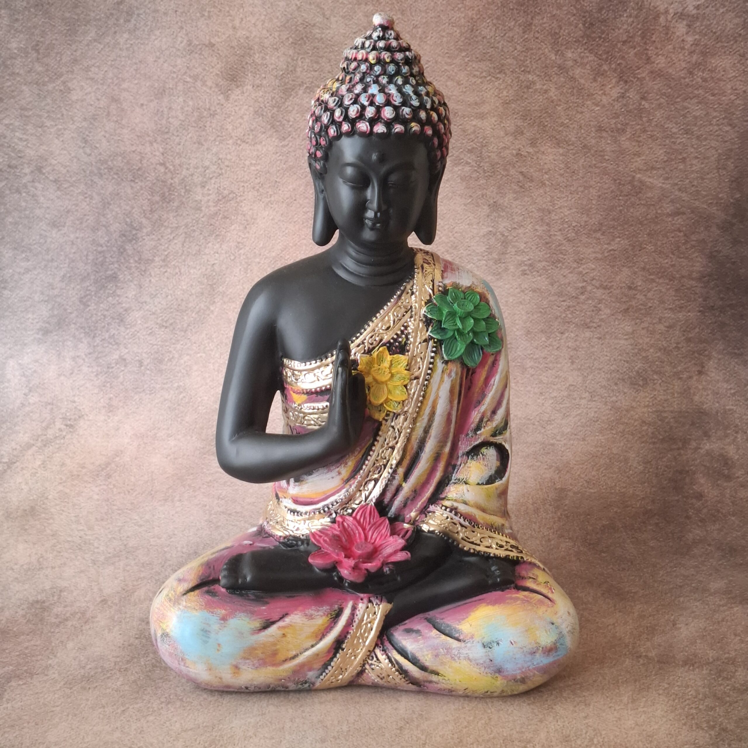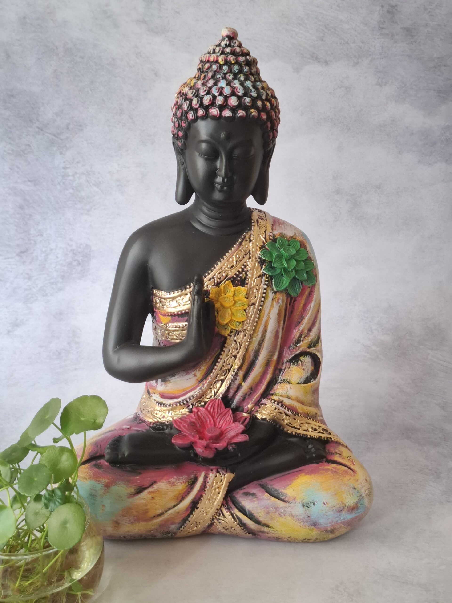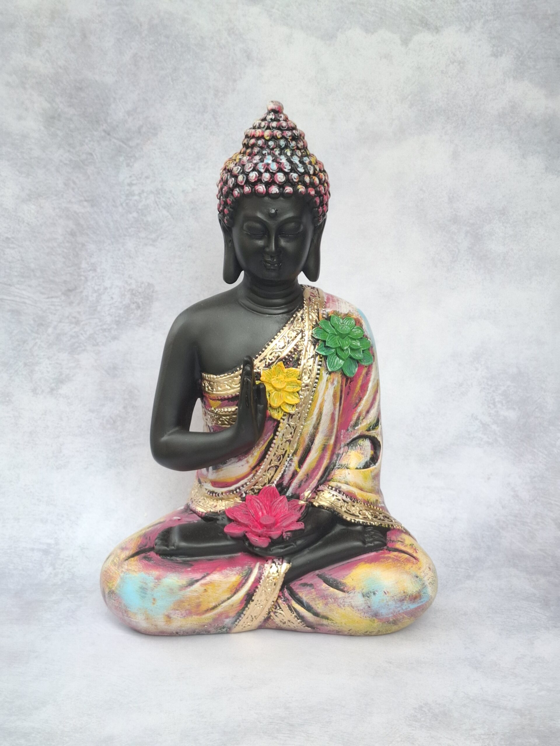 Bring serenity and balance to your surroundings with this beautifully crafted Multicolor Serenity Buddha statue. Designed to radiate peace, mindfulness, and spiritual energy, this vibrant figurine adds a divine charm to your home, office, or meditation corner. The colorful floral detailing and artistic finish make it a perfect blend of tradition and modern décor.