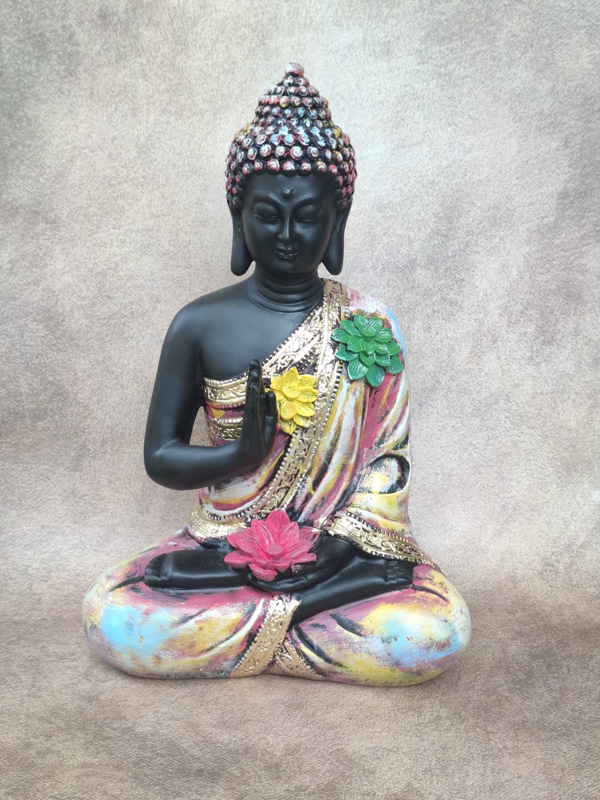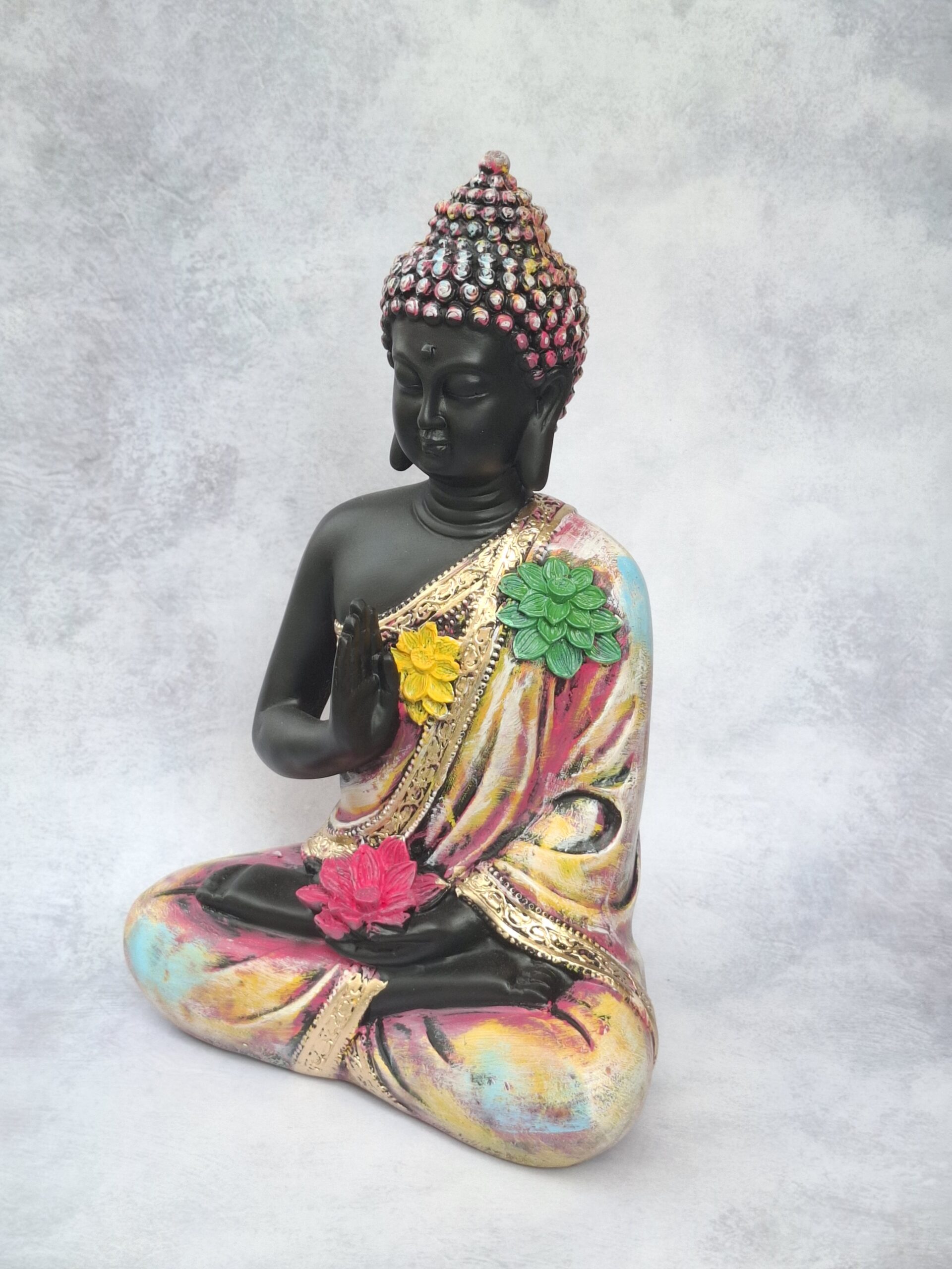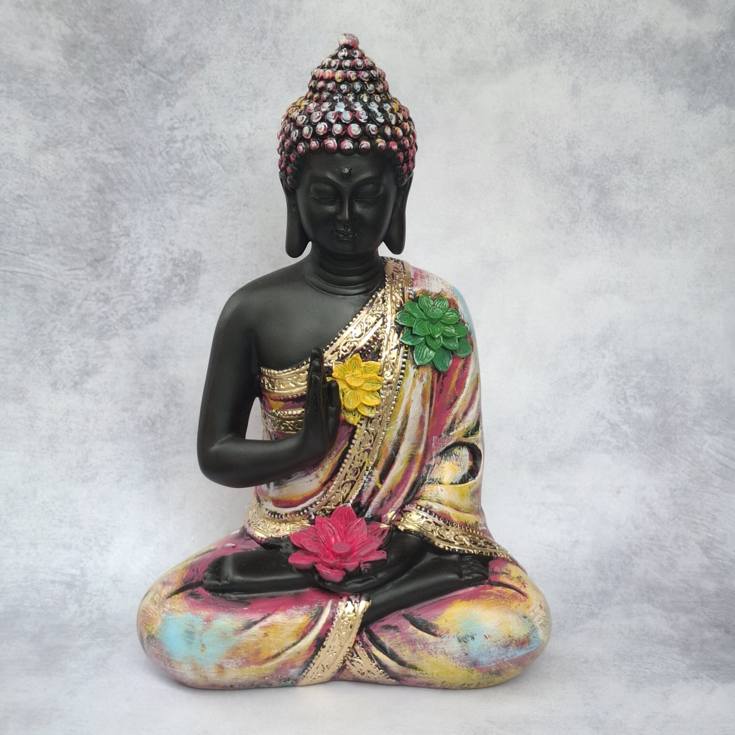 Bring serenity and balance to your surroundings with this beautifully crafted Multicolor Serenity Buddha statue. Designed to radiate peace, mindfulness, and spiritual energy, this vibrant figurine adds a divine charm to your home, office, or meditation corner. The colorful floral detailing and artistic finish make it a perfect blend of tradition and modern décor.
