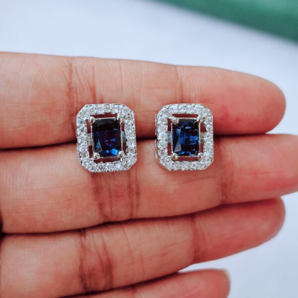 Elevate your style with Pearls And Palettes’ Elegant Rectangular Center Stone Stud Earrings. These stunning earrings showcase a bold rectangular center stone framed with radiant American Diamonds, offering a sophisticated and classy look suitable for formal events and traditional celebrations.