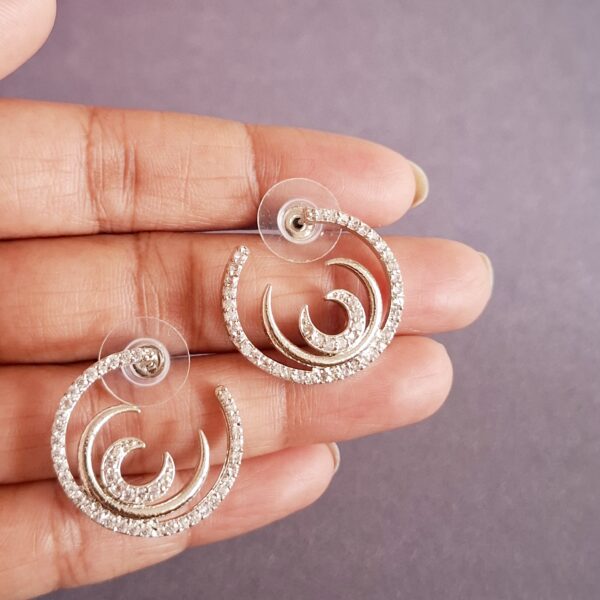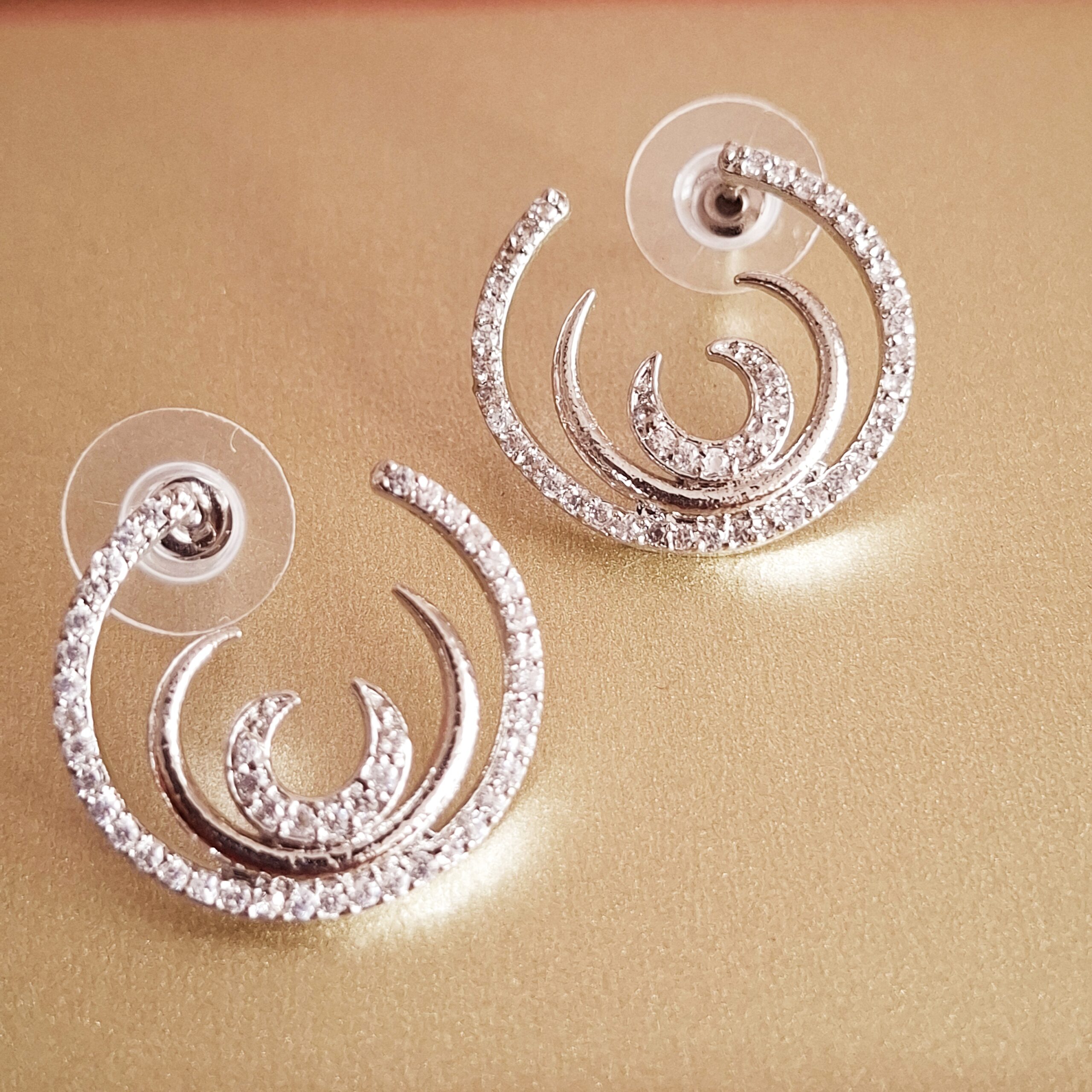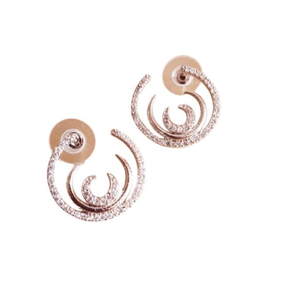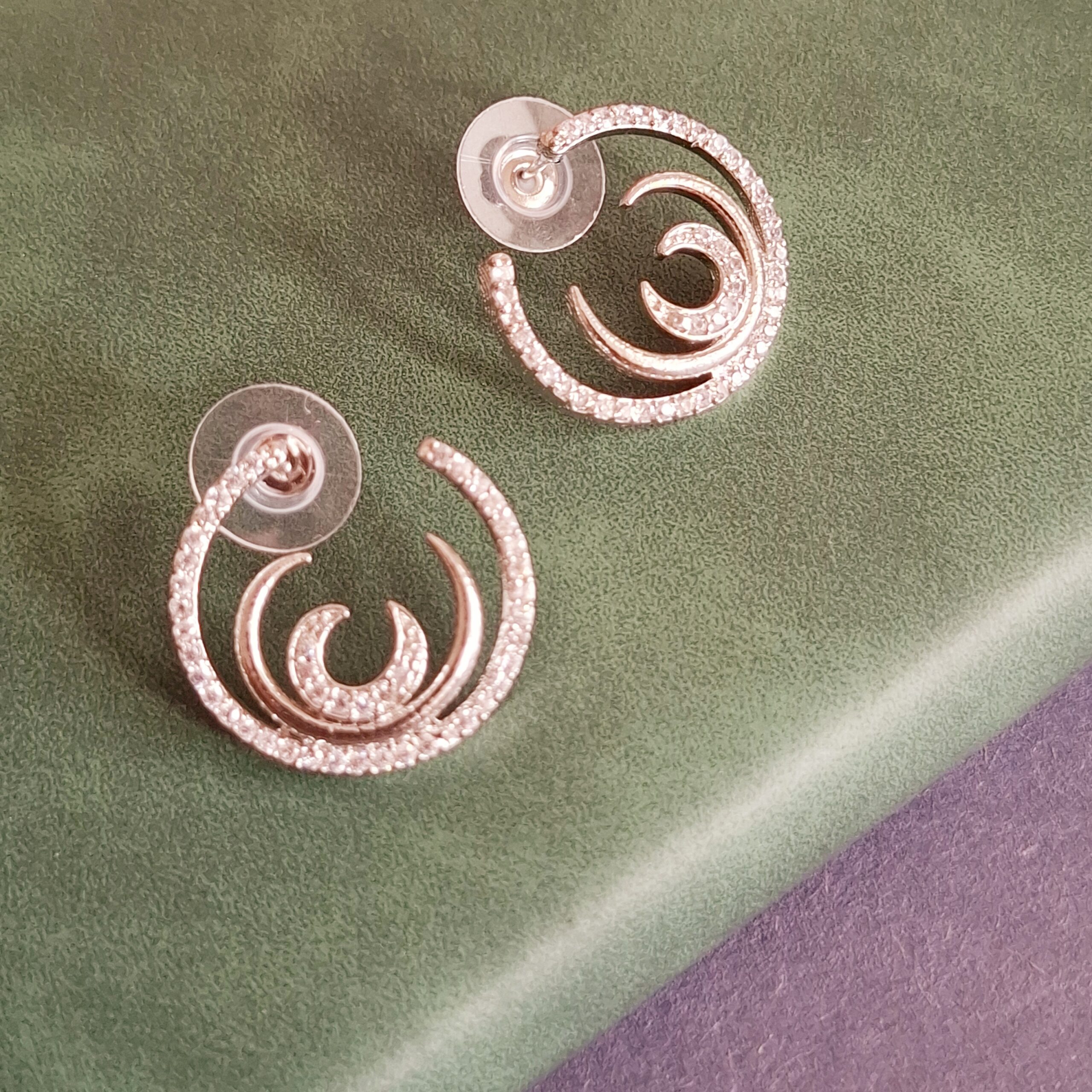 Elevate your style with Pearls And Palettes’ Modern Spiral Design Stud Earrings. Featuring a captivating spiral motif adorned with radiant American diamonds, these earrings offer a perfect blend of contemporary elegance and timeless charm. Their intricate design catches light from every angle, creating a subtle sparkle that enhances any outfit effortlessly. Ideal for weddings, festive celebrations, or evening gatherings, these studs make a sophisticated statement without overpowering your look.