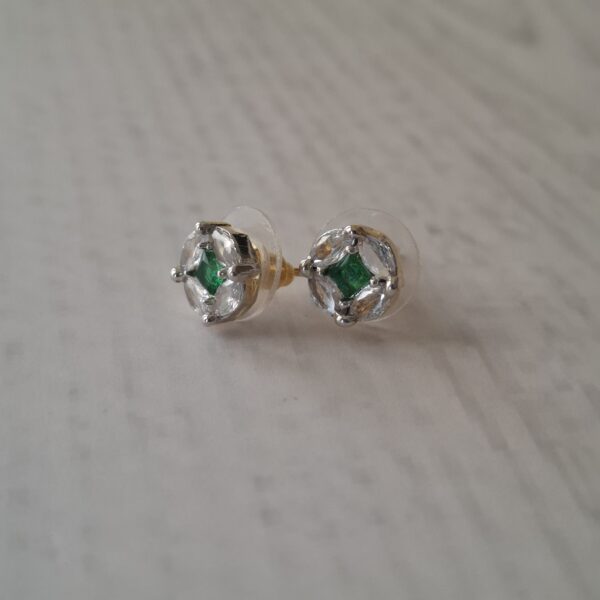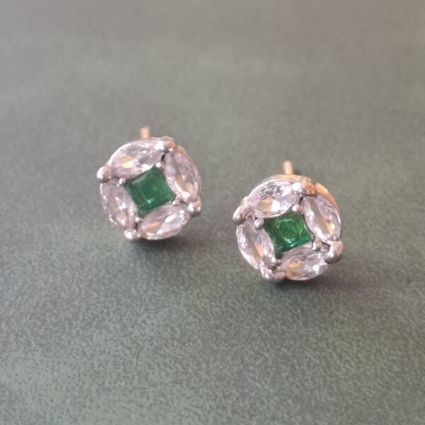 Add sophistication with Pearls And Palettes’ Square-Cut Stud Earrings. Featuring a sharp square-cut stone bordered with American Diamonds, these earrings bring modern elegance to traditional designs.