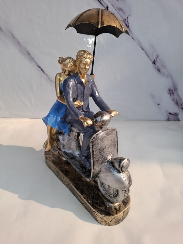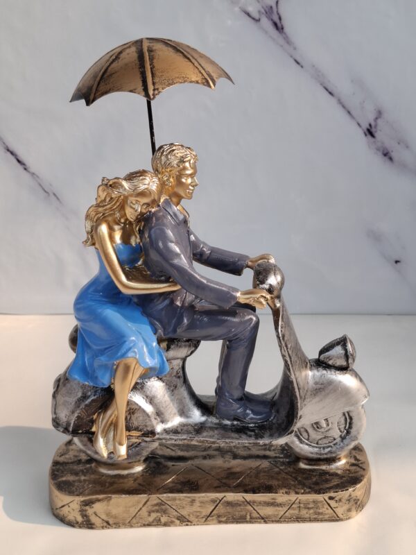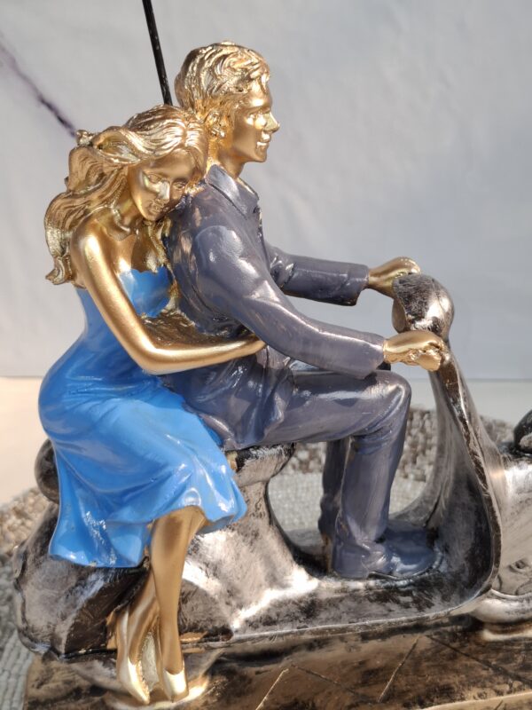 Celebrate the spirit of love and togetherness with this charming Young Couple on Scooter figurine. Perfectly capturing the joy of shared journeys, this beautifully crafted piece adds warmth and romance to any space.